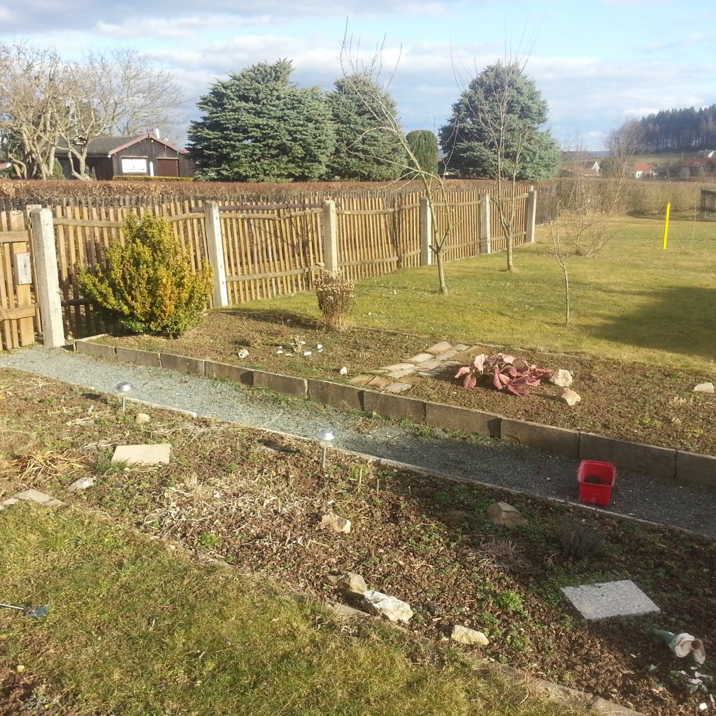 2014 haben ich unseren ersten Kleingarten in Irfersgrün (Lengenfeld, Sachsen) gepachtet. Der Garten hat zu diesem Zeitpunkt eine Gesamtfläche von 450 Quadratmetern. Neben einer wunderschönen Gartenlaube und einer überdachten Terrasse kann man sich auch an einen kleinen Gartenteich erfreuen.